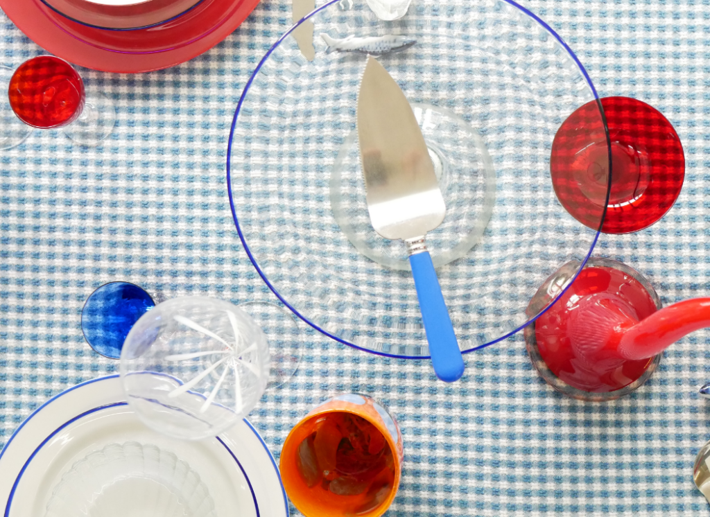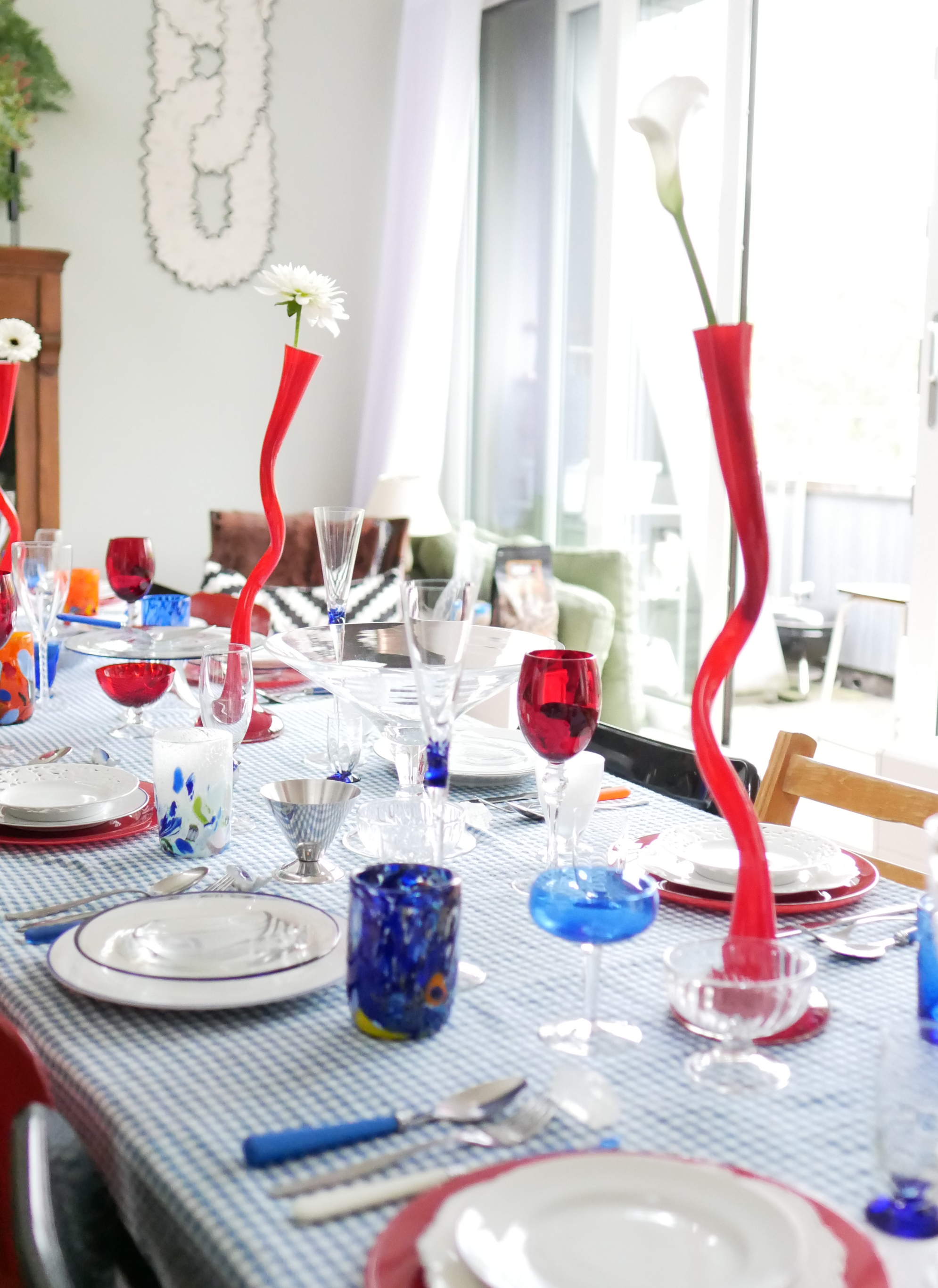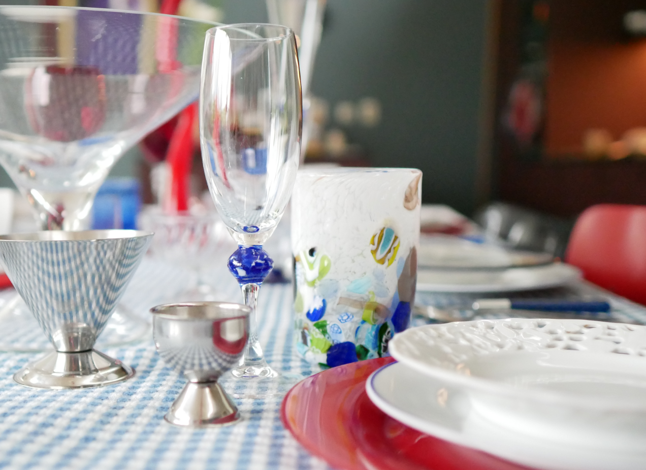 Een diner in zee! Deze tafel is is helemaal in de sferen van de onder water wereld. Murano, rood, blauw en alles wat met de zee te maken heeft.
