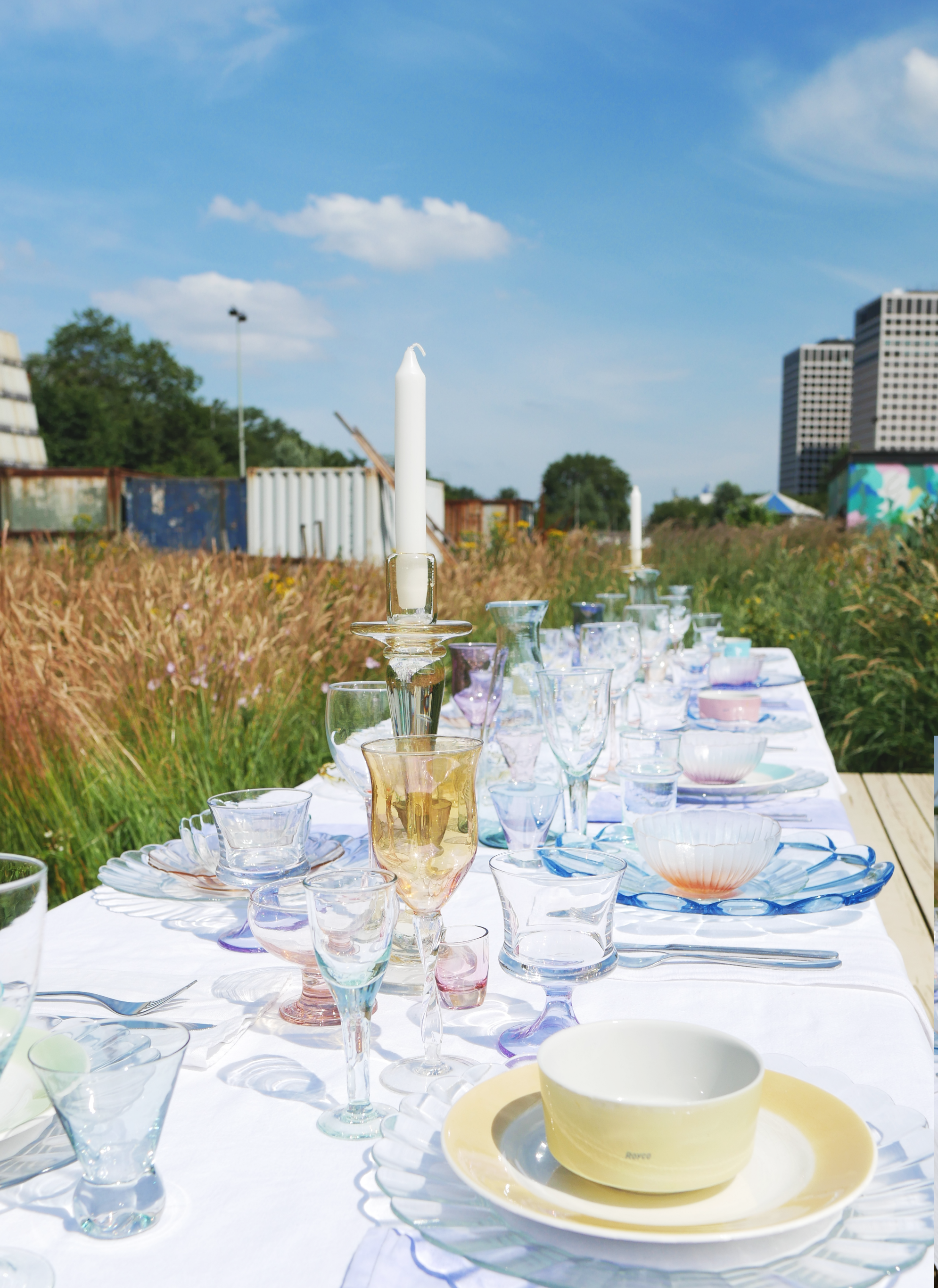 In principe lever je de spullen na gebruik schoon weer bij ons in (behalve servetten en tafellakens). Geen zin om af te wassen? Voor een kleine meerprijs mag je het vies inleveren.